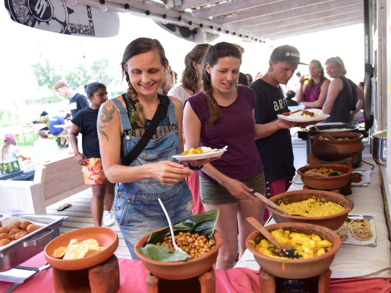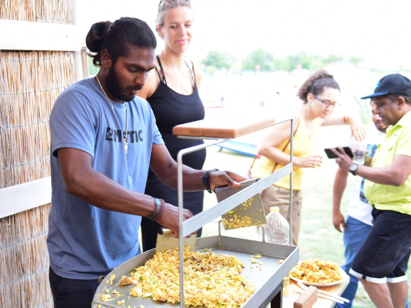 As part of the celebrations of our water sports friends for the 30th anniversary of Austria’s largest surf store UpSideDown, we were allowed to create a Sri Lanka night in Podersdorf on one of the evenings! However, traveling in times to Corona is not necessarily easy, but possible. Together with surf store UpSideDown we wanted to give the Podersdorf kitesurfing scene a little inspiration where to go for next holidays! And to spoil you with some Singhalese delicacies 🙂 Moreover, Sri Lanka has besides one of the kitesurfing hotspots in Kalpitiya also a lot to offer culturally! Delicious curries, fresh fruits and vegetables, as well as seafood from the surrounding waters.